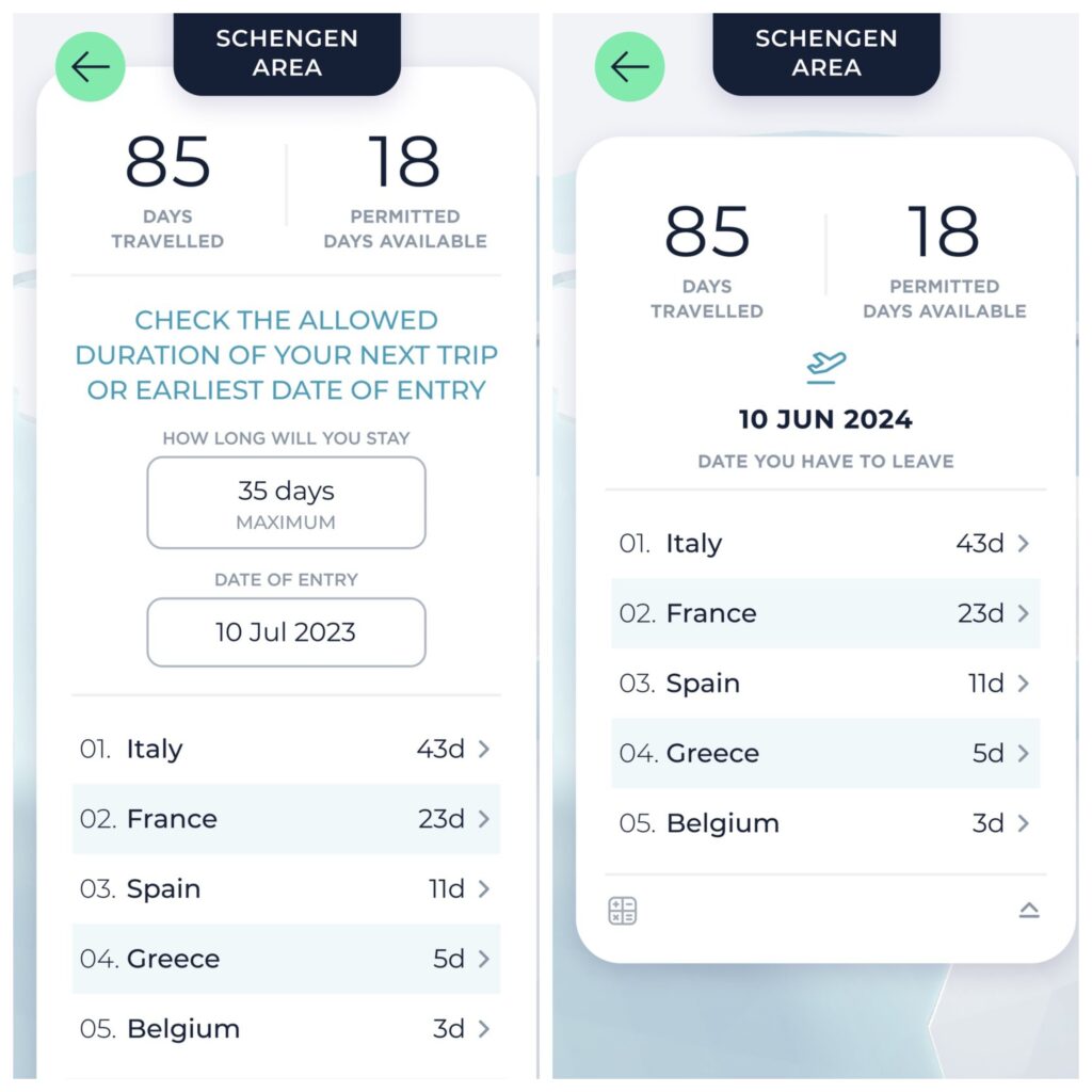 It can be difficult to track how many days you have left in your quota as you cross over borders and enter and leave the Schengen area as you travel around Europe. Flamingo is a new application that automatically tracks how long you have spent in different countries using your phone’s GPS. You can also enter your visa information, and Flamingo will track how long you have spent, and how long you have left. It is incredibly useful for the Schengen area when you are regularly crossing borders. But it can be used anywhere in the world with any type of visa.